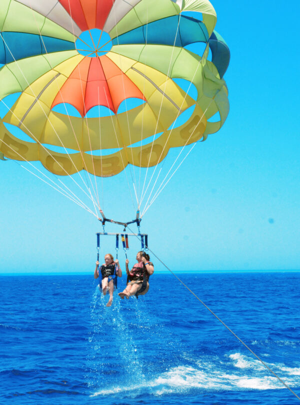 Motorówką wypłyniesz na środek morza, skąd wystartujesz – sam lub w parze – i przez blisko 5 minut będziesz podziwiać panoramę Hurghady z wysoka. Uczucie wolności i lekkości gwarantowane!